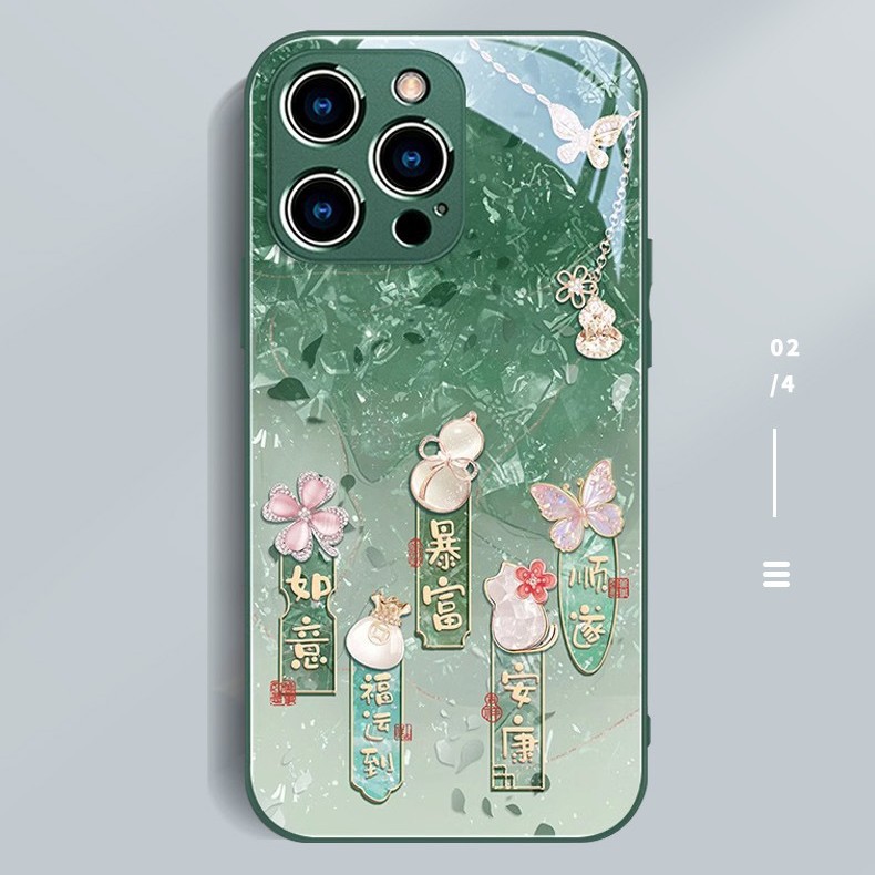 Casing Ponsel Apple 16Promax Cocok untuk Ruyi Rich Hoist iPhone 13 Kaca Cair 15 Gaya Trendi Nasional 14