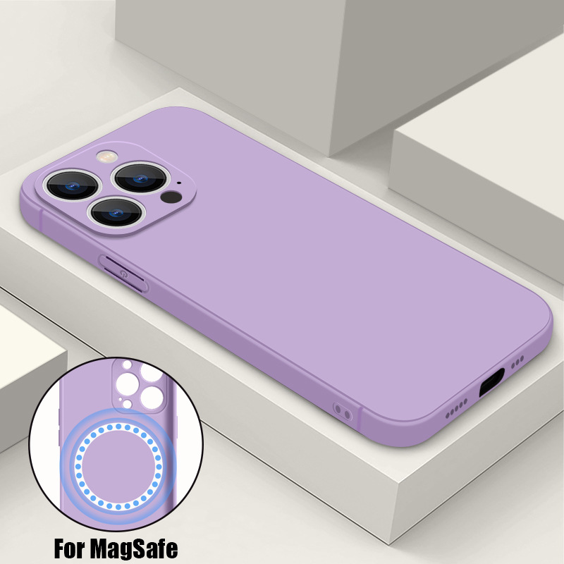 Casing ponsel cairan imitasi 14Pro, casing pelindung tahan jatuh Apple 13 daya sedot magnetis dengan cairan imitasi