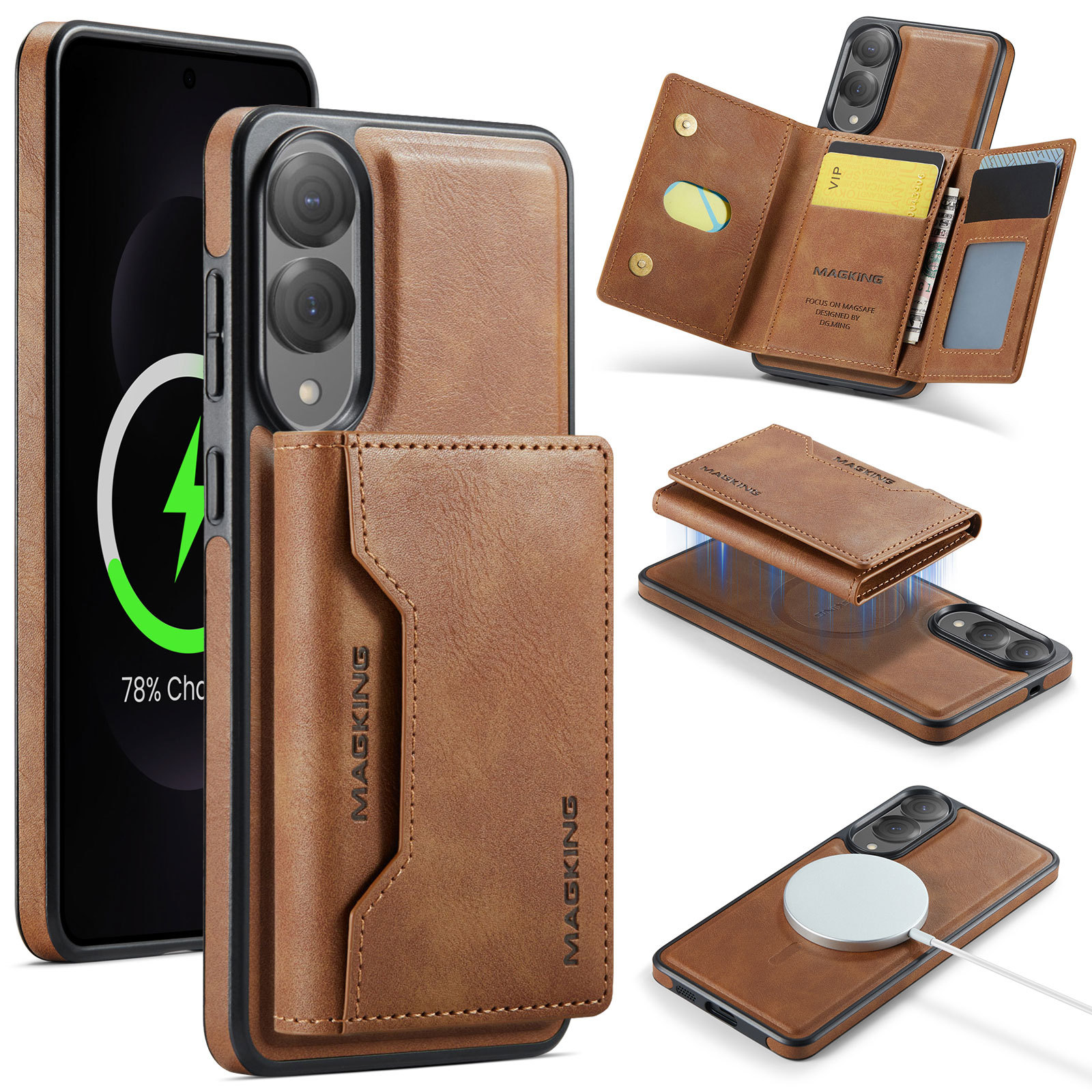 Casing Ponsel Pengisi Nirkabel MagSafe Sarung Kulit Pelindung Dompet Kartu MagS25 Edge 2-in-1 untuk Samsung S25 Edge