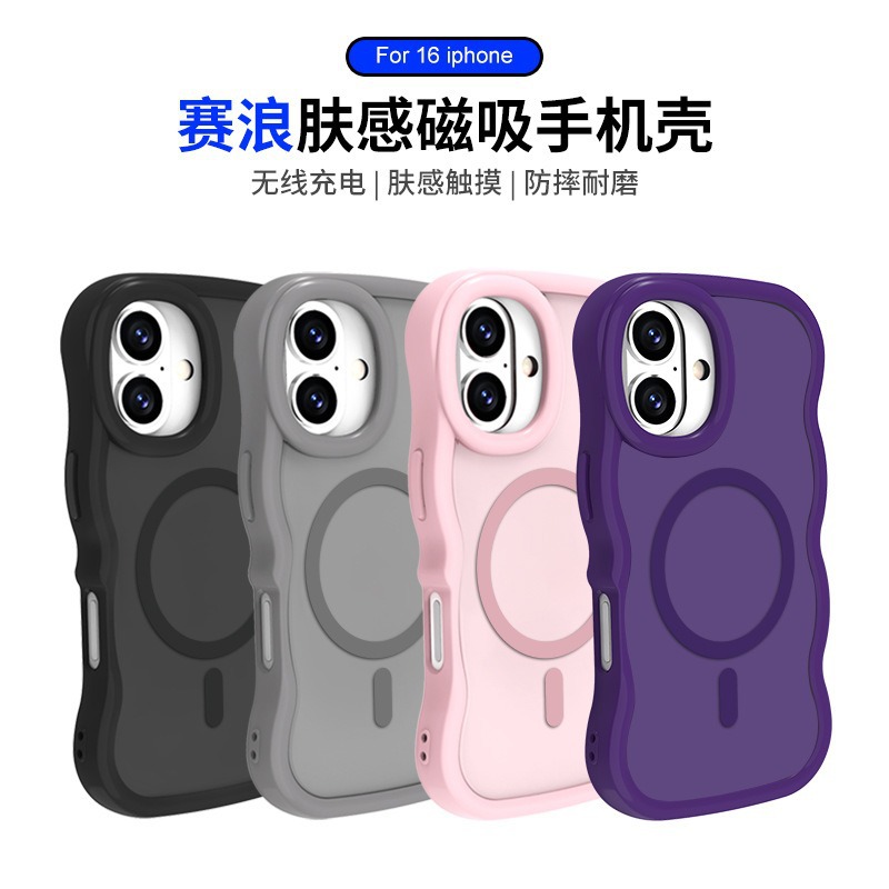 Casing Ponsel Pengisap Magnetik Bergelombang untuk iPhone16 16 PROMAX Casing Ponsel Dua Dalam Satu Kulit 16E
