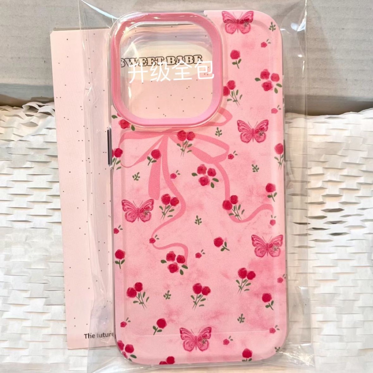 Warna Merah Mawar Bunga Bunga Kupu-kupu Apple 15/14/13Promax Casing Ponsel 12/11 Lunak Xr/XS Transparan 8P Semua Terbungkus