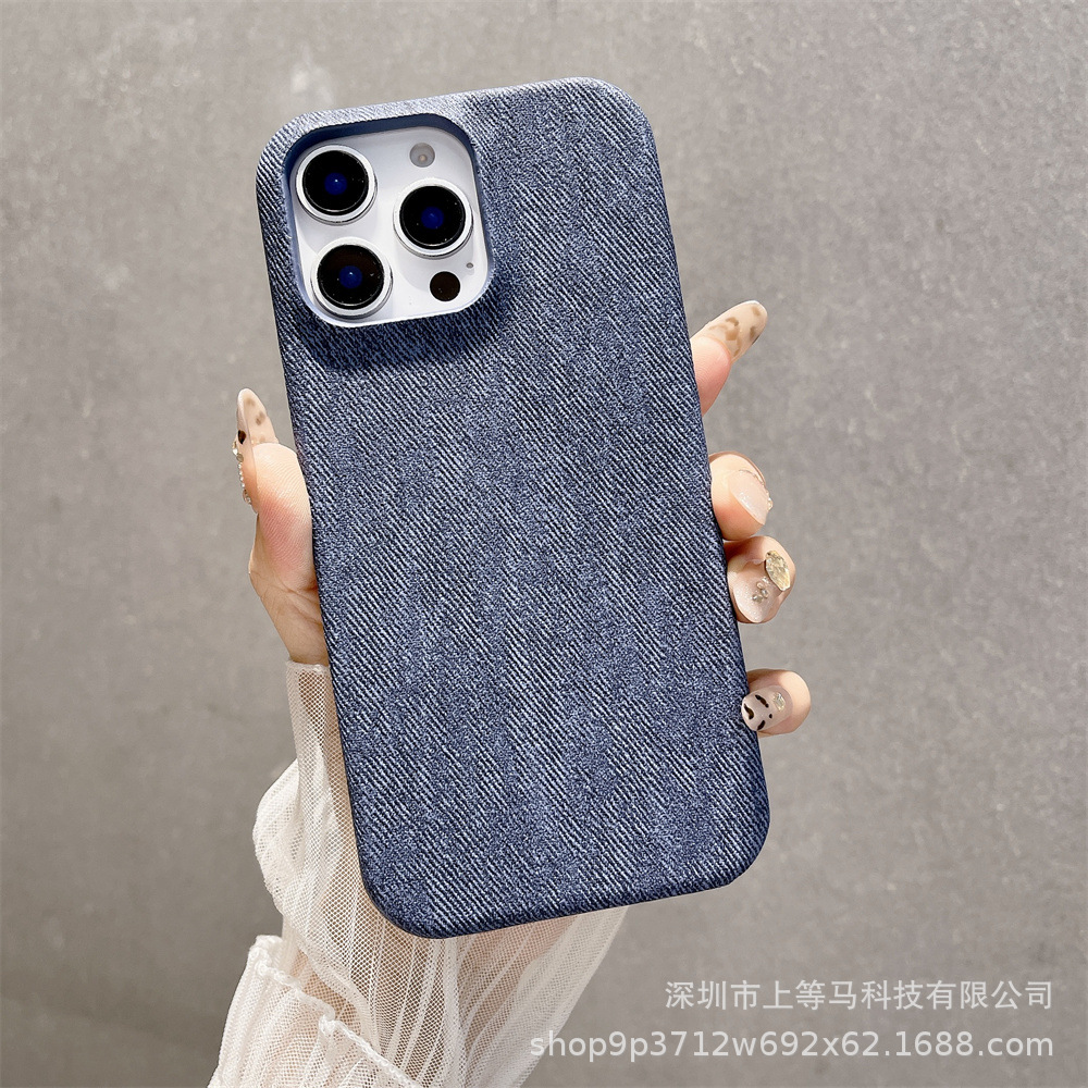 Casing Ponsel Modis Model Baru iPhone 16ProMax Pola Denim Setengah Tas Sarung Pelindung Anti Jatuh Apple 15 Keras