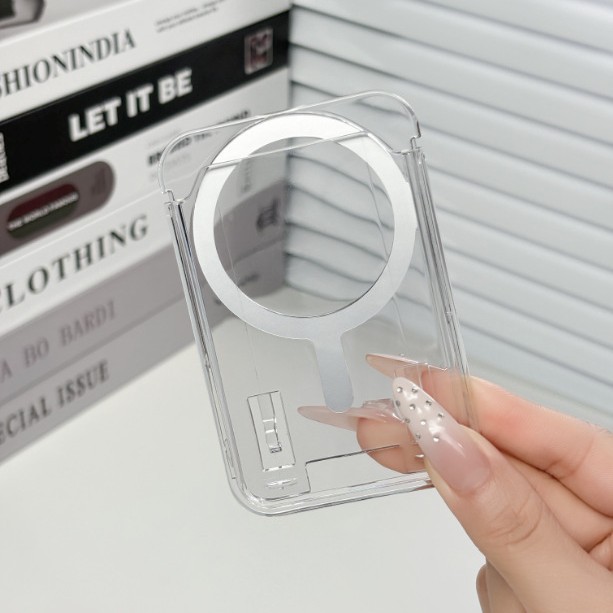 Tempat kartu transparan dua dalam satu akrilik cocok untuk iPhone14ProMax casing ponsel Apple 15 tempat kartu