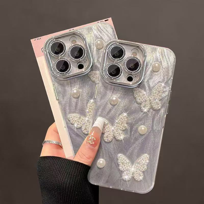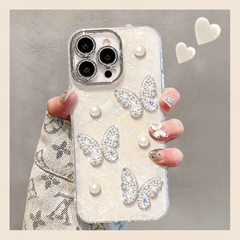 Gelang Kupu-kupu Mutiara Cocok untuk Apple 16Promax Casing Ponsel 15 Mewah Ringan 14 Rasa Premium 13 Gadis 12 Tiga Dimensi