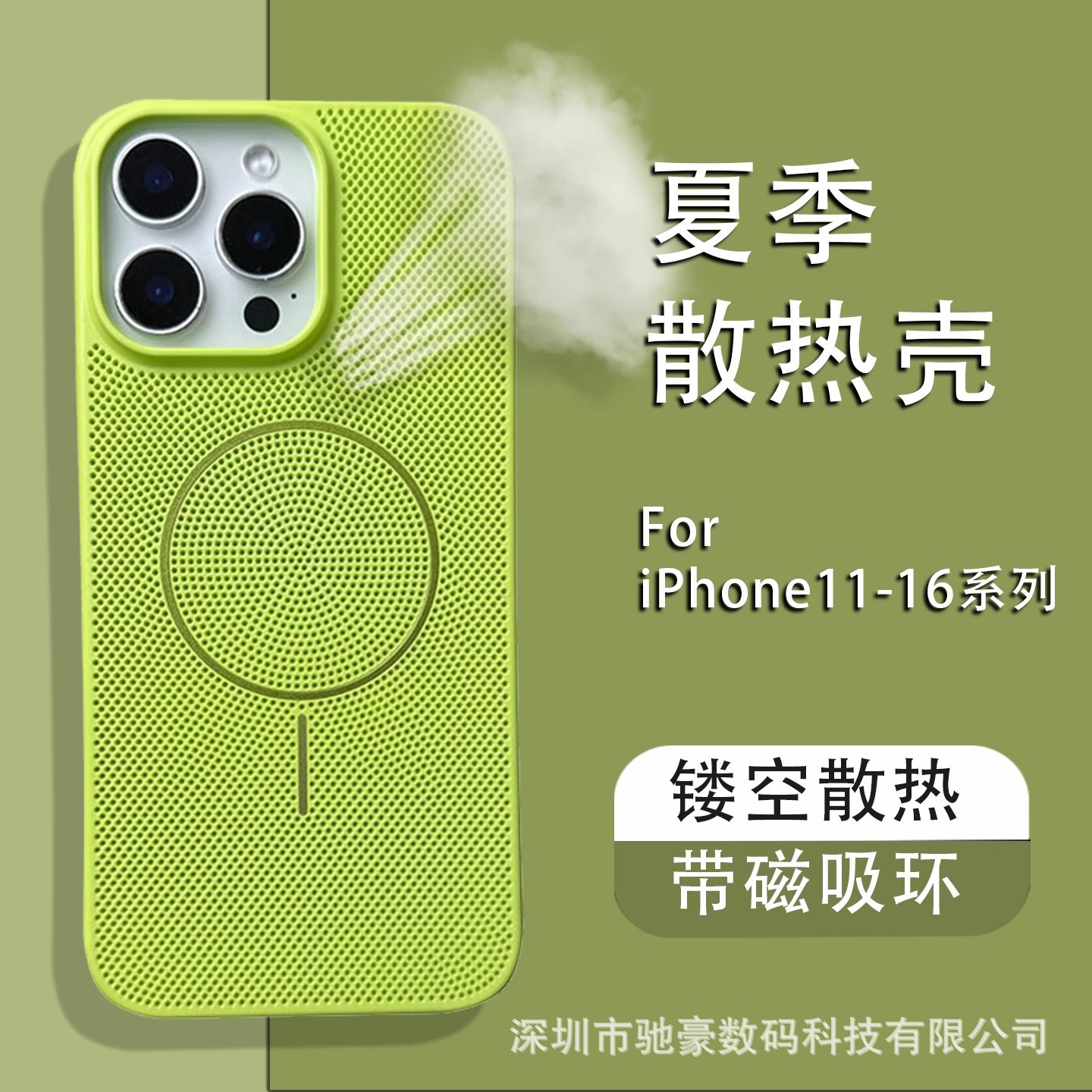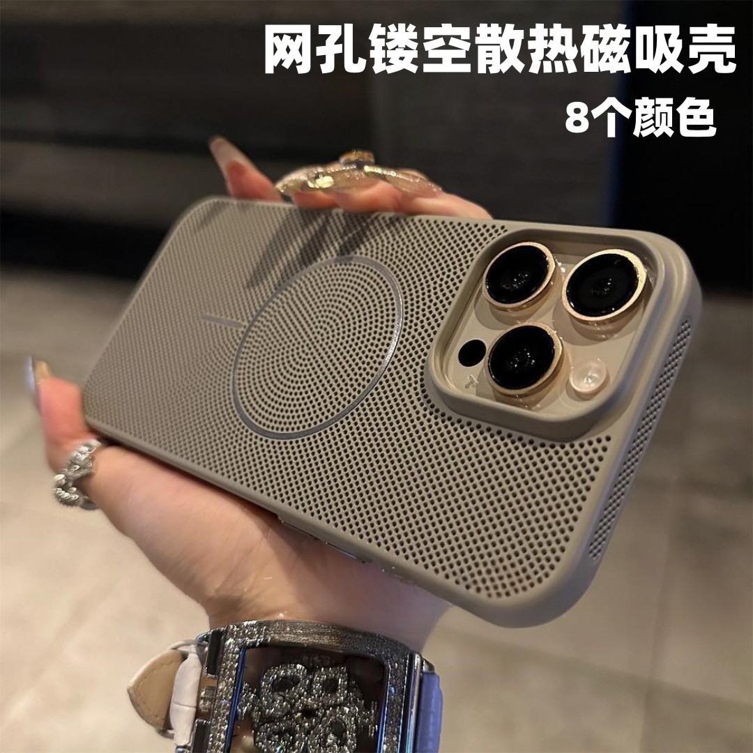 Casing Ponsel Penyedot Magnetik Jaring Berongga iPhone16 Cocok untuk Pendingin Musim Panas Sarung PC Anti Jatuh Super Tipis Matte Apple 15