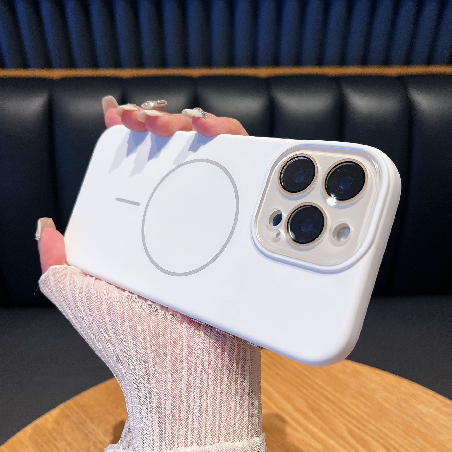 Casing Silikon Cair untuk IPhone16 Cincin Tipis Casing Ponsel Pengisap Magnetik Apple 15Promax dengan Pelindung Film Lensa