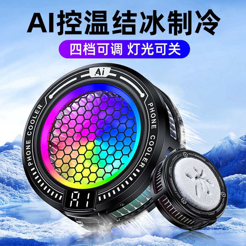 2025 Klip Belakang Radiator Ponsel Model Baru Kreatif Dua Dalam Satu Semikonduktor Es AI Cerdas Keren Efek Lampu