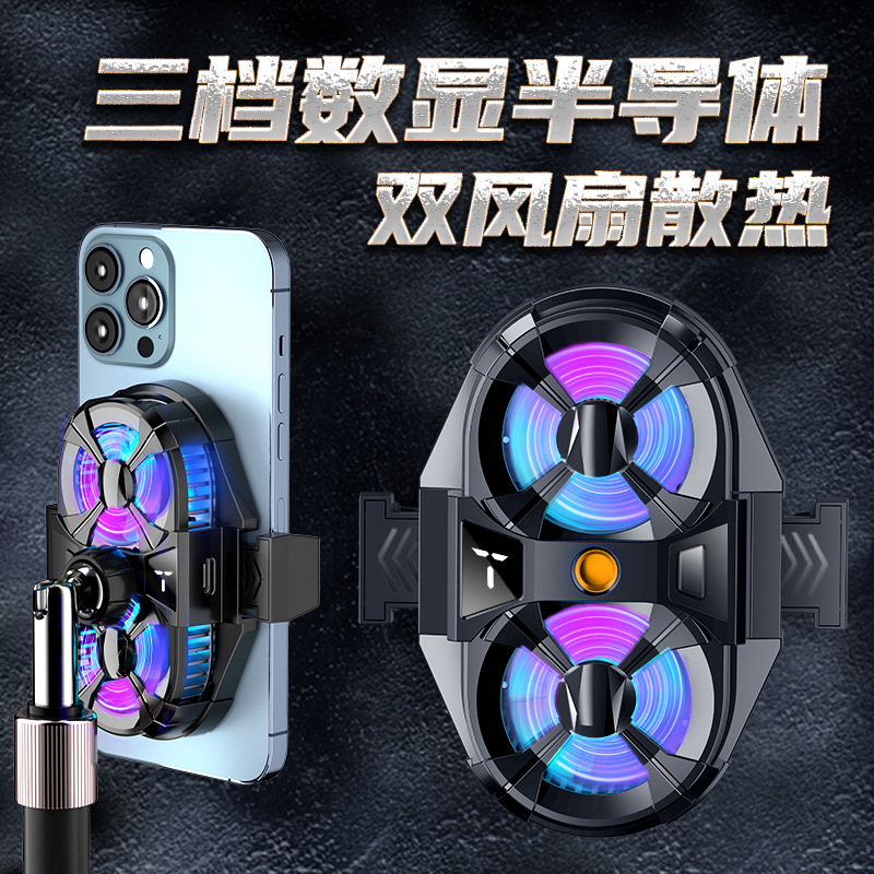 SL07 radiator ponsel, kipas ganda tiga gigi tampilan digital semikonduktor permainan ponsel pendingin langsung