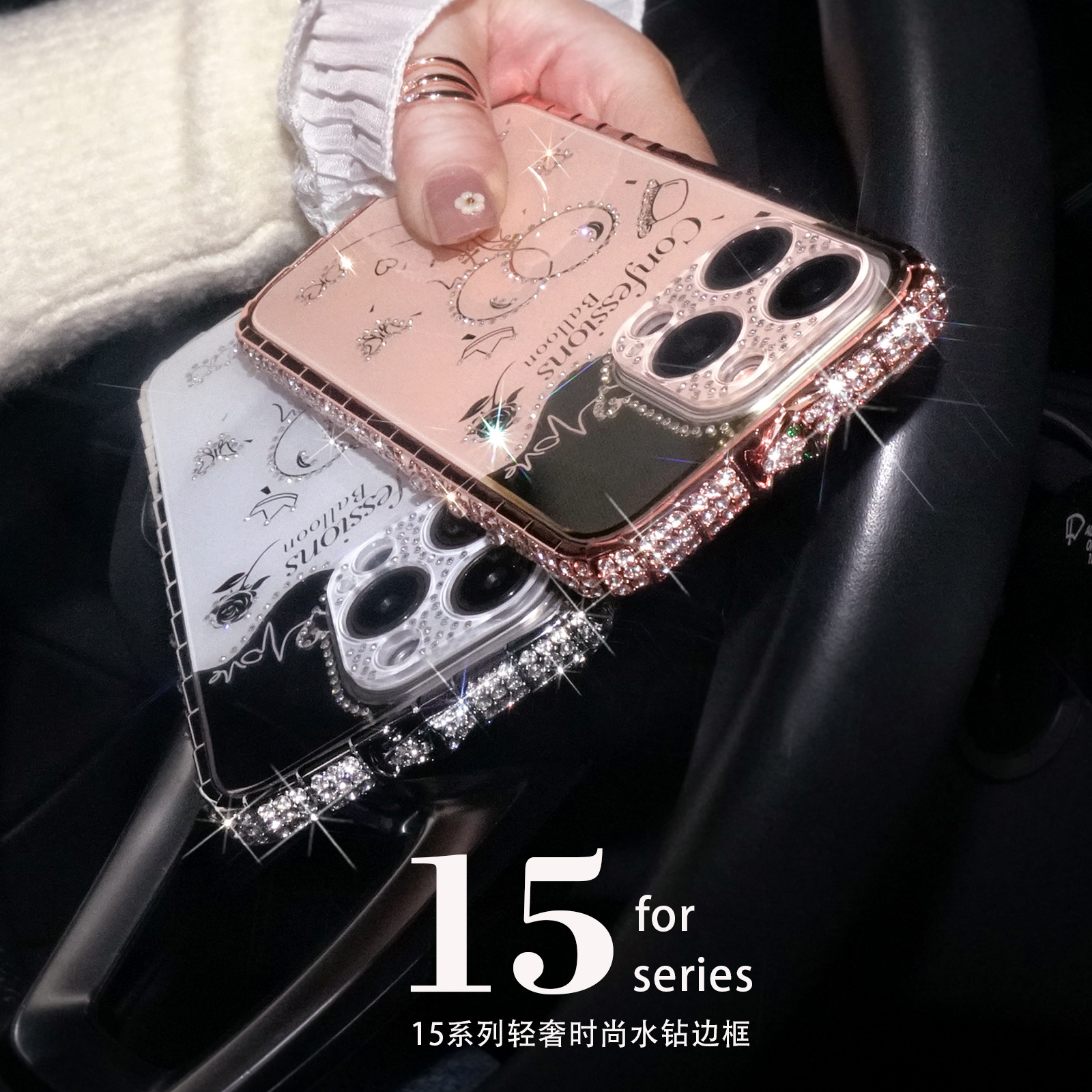 Cocok untuk Apple 15pro cangkang ponsel dengan berlian iphone15pro Max kerangka berlian flash berlian 14/14proMax shell
