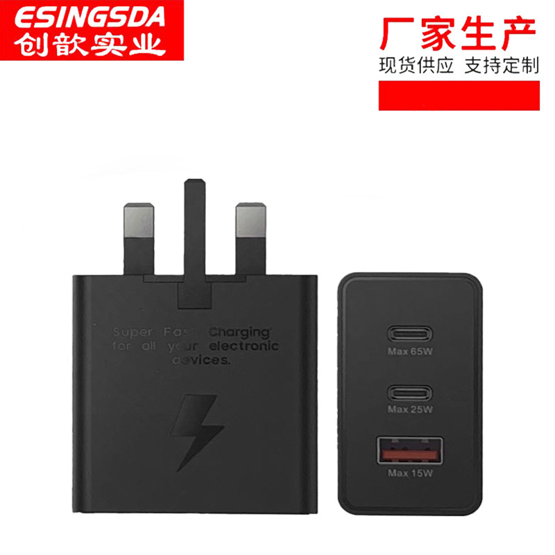 S22 pengisi daya flash tiga port PU cocok untuk pengisi daya ponsel Samsung PD65w Kepala pengisi daya C ganda standar Inggris pengisian daya super cepat