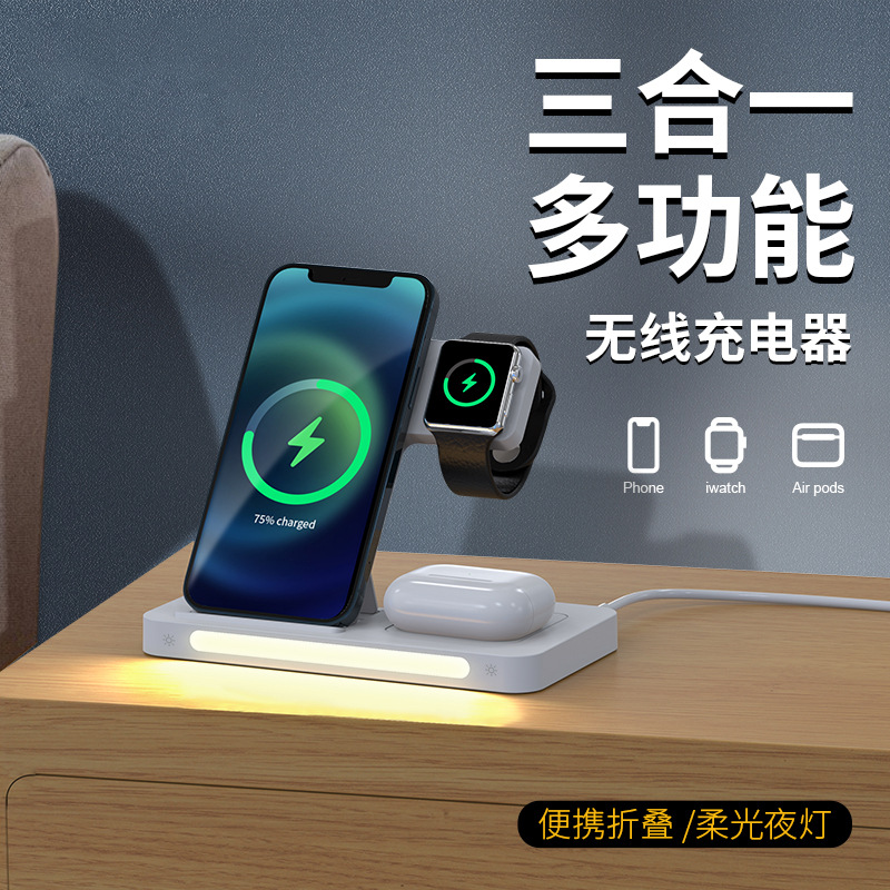 Pengisi daya nirkabel tiga dalam satu perdagangan asing baru cocok untuk jam tangan ponsel Samsung Apple pengisi daya nirkabel tiga dalam satu