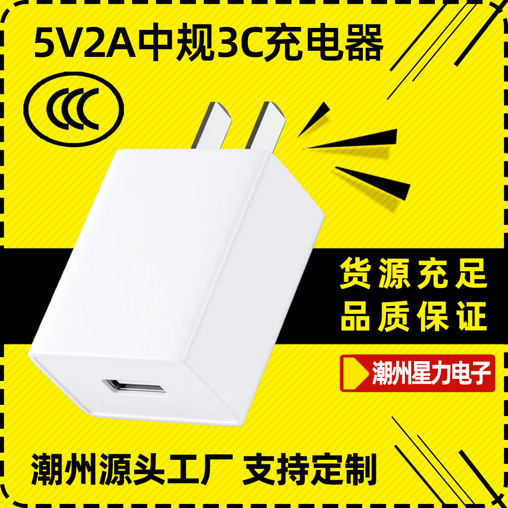 Pengisi daya ponsel multi-kompatibel 5V2A Kepala pengisi daya sertifikasi CCC pin pengukur sedang cocok untuk peralatan rumah tangga kecil pengisi daya USB