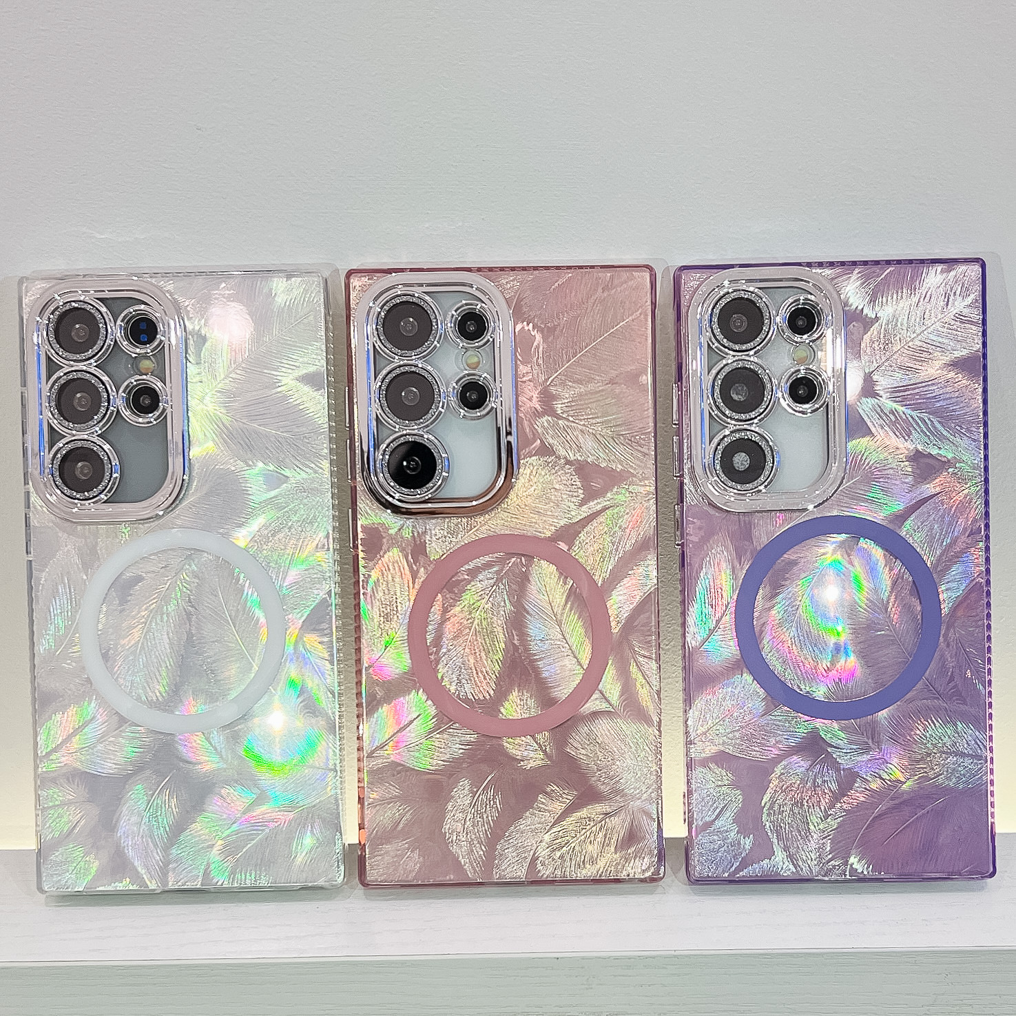 Casing Ponsel Serap Magnetik S24 Plus untuk Pola Bulu Sarung Film Lensa Flasher Pelapis Listrik A56 Film Lintas Batas