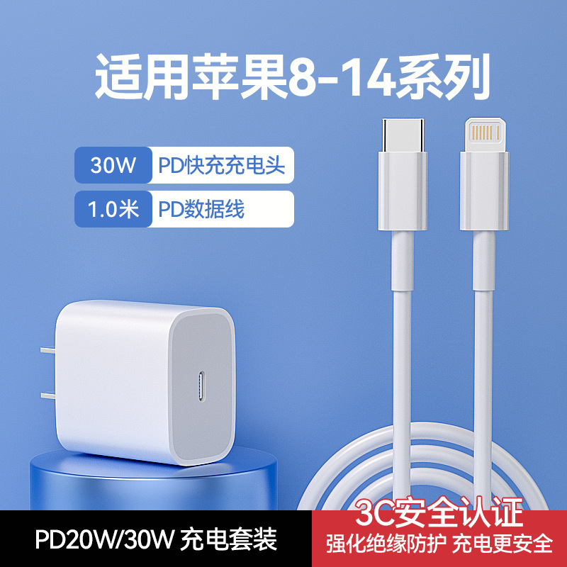 Cocok untuk kepala pengisi daya asli Apple 30W gallium nitride, kepala pengisian cepat 15, kepala pengisian cepat 16/17, set kabel data ponsel