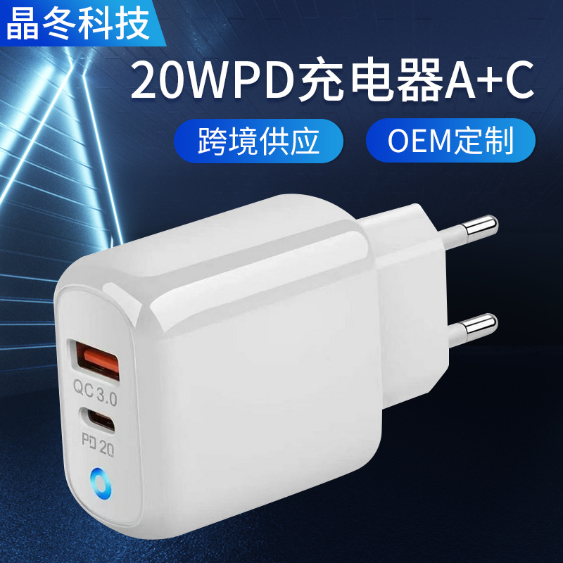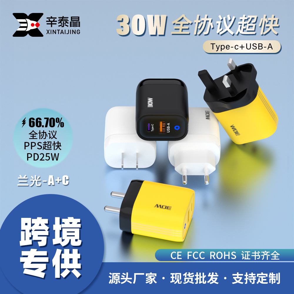 Pengisi daya ponsel lintas batas 12W30W, protokol penuh TYPE-C + pengisi daya multi-port USB standar Eropa QC kepala pengisian cepat