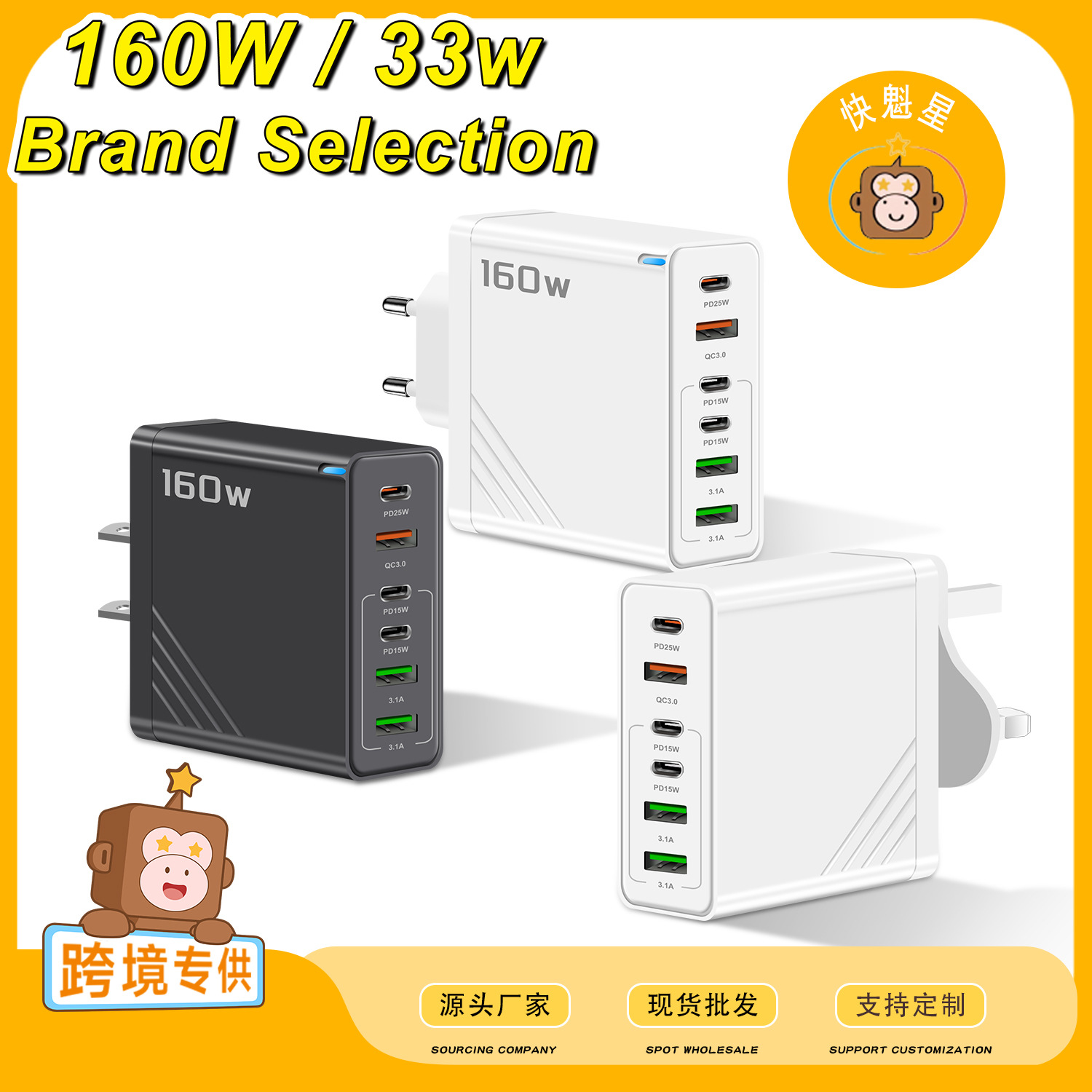 Pengisi Daya Ponsel Cepat Lintas Batas 5V5A Adaptor Multi-Port 3PD 3USB Eropa dan Amerika