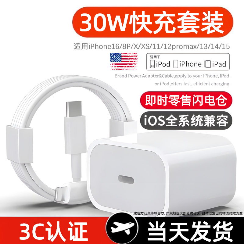 PD30W setelan kabel data tipe-c, Kepala pengisi daya cepat untuk Apple iPhone15