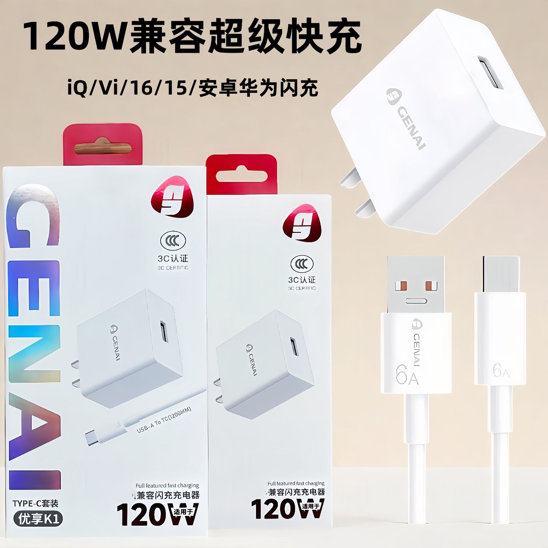 Berlaku untuk vivoX100pro pengisi daya ponsel cepat, Kepala pengisi daya Cepat 120W Super flash pengisi daya 3C setelan 6A kabel C ganda grosir