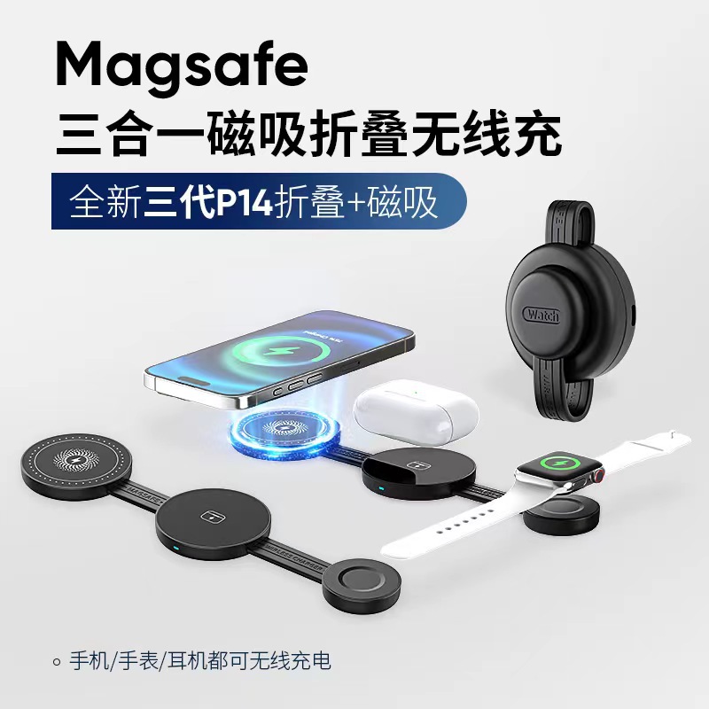 Crossborder Model Baru 3-in-1 Lipat Magnetik Pengisi Daya Nirkabel Portabel Portabel Pengisi Daya Nirkabel Serap Magnetik Ponsel Multifungsi
