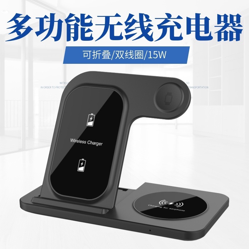 Pengisi daya Cepat Mini 15W untuk Apple, headset jam tangan ponsel, pengisi daya nirkabel tiga-dalam-satu, magsafe