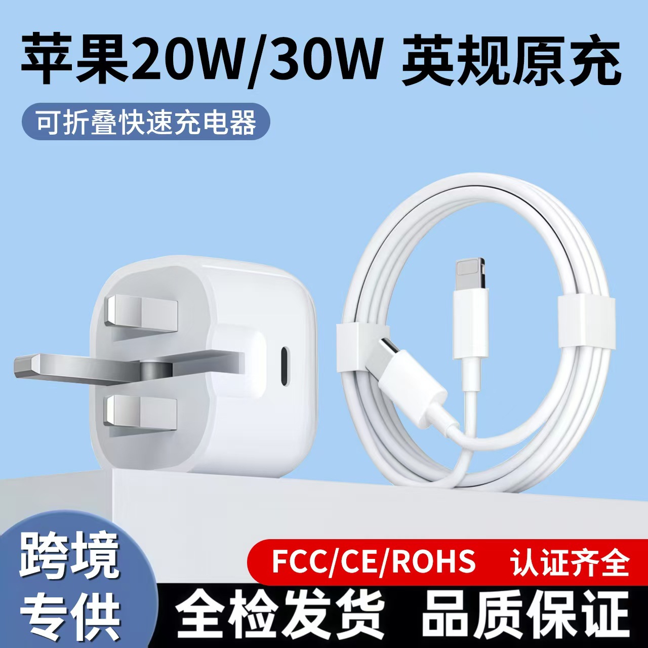 Kepala pengisian daya cepat lintas batas pdf 20w standar Inggris untuk ponsel Apple set pengisi daya lipat tiga kaki