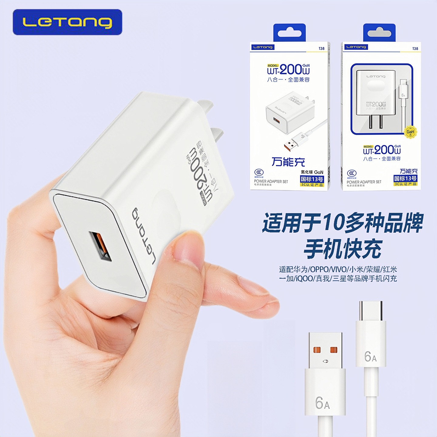 Le Gula Pengisi Daya Cepat Ponsel 200W Untuk Huawei Oppovivo Xiaomi USB Charger Set Grosir