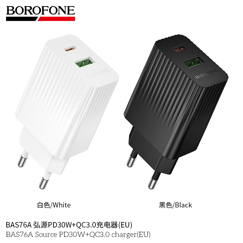 BOROFONE BAS76A EU Charge Cepat PD30W QC3.0 Colokan Pengisi Daya Ponsel Adaptor Perjalanan