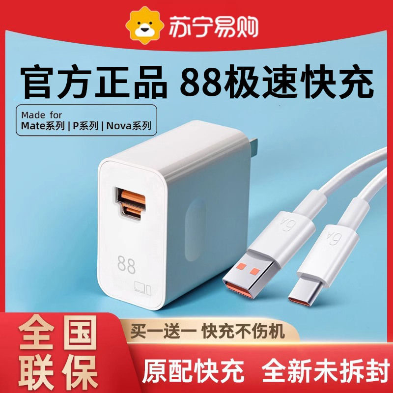Cocok untuk Huawei 88 Charger Kepala Mate60pro /50/40 Colokan Ponsel Set Asli Kabel Data Pura70