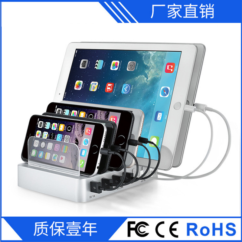 Pengisi daya USB Multi-port, braket pengisian desktop universal 6-port, stasiun pengisian vertikal, pengisi daya USB pintar