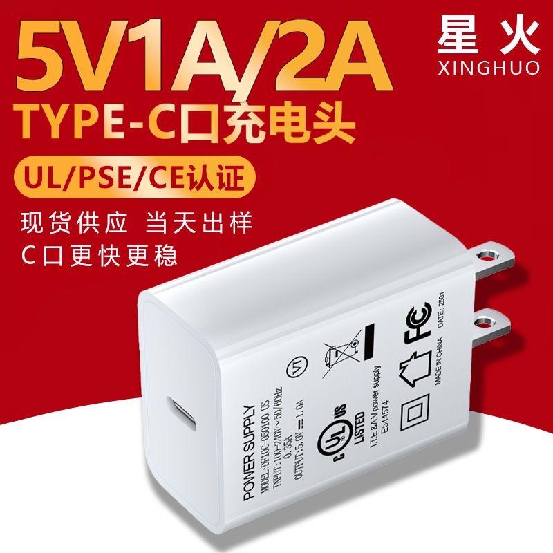 Kepala pengisian port TYPE-C Amerika, Jepang, Eropa dan Inggris 5V1A/2A charger UL/PSE/CE sertifikasi adaptor daya