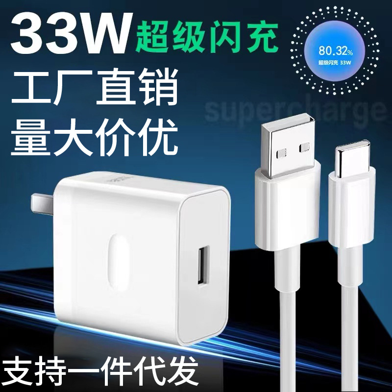 Cocok untuk OPPO pengisi daya 33W kepala pengisian cepat A96 pengisian daya Super flash Reno7se Find N k9x kabel kepala pengisian daya