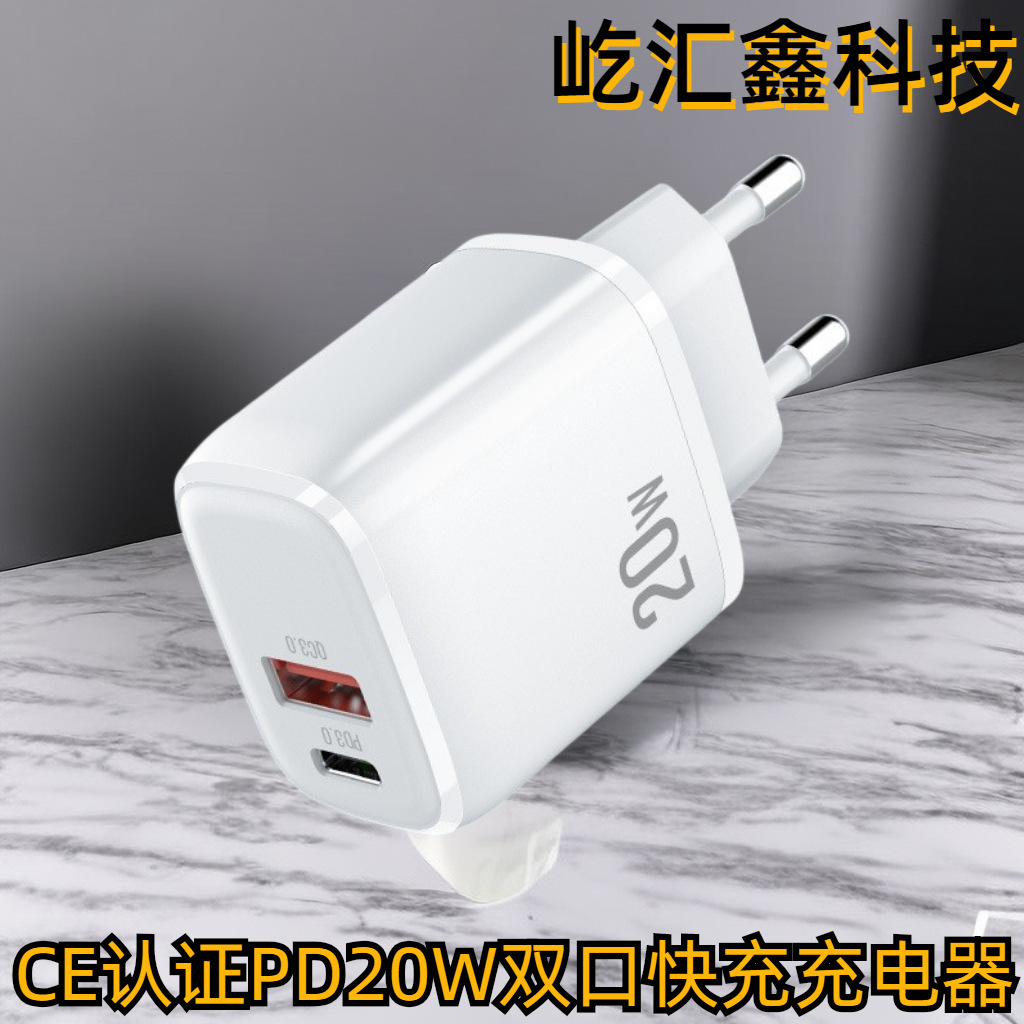 Pengisi daya Cepat standar Eropa QC3.0 bersertifikasi CE PD20W untuk pengisian daya cepat Apple kepala pengisian dua port 18W