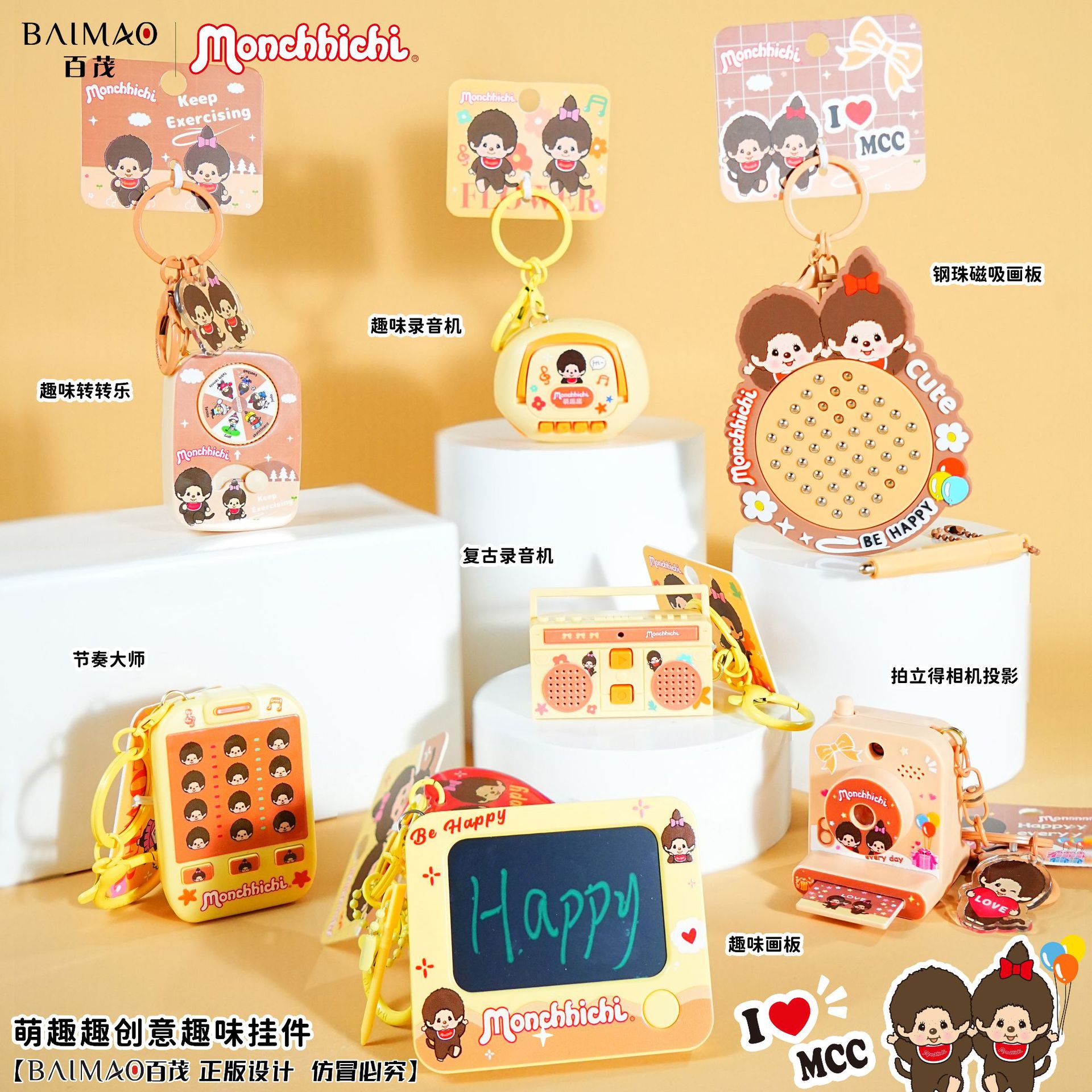 百茂正版萌趣趣多功能钥匙扣益智钢珠画板消消乐录音机玩具包挂件