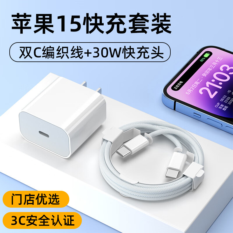 Kabel isi daya cepat Apple 30W, setelan pabrik asli kabel data dual C iPhone tablet