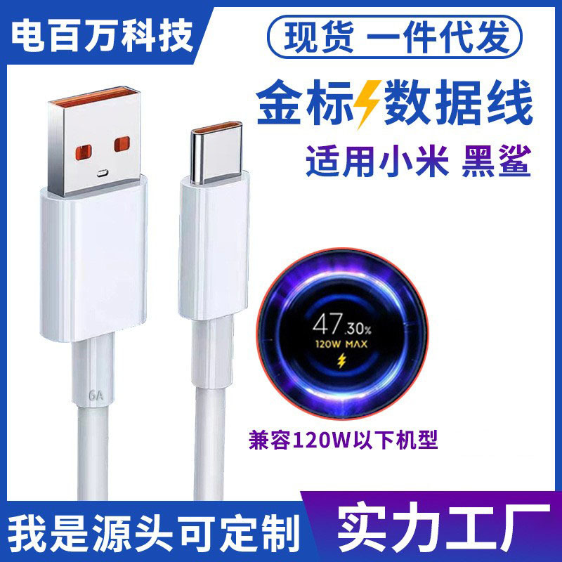 Cocok untuk kabel data Xiaomi 120W, pengisian cepat Redmi 67W standar emas MAX sepenuhnya kompatibel dengan pengisian cepat 90W kabel pengisian TypeC.