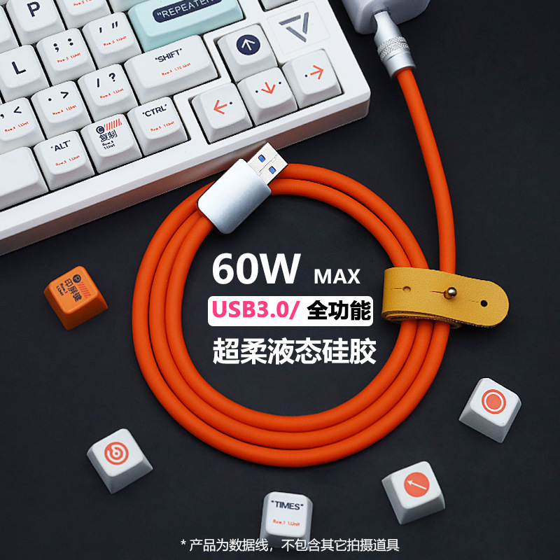 Fungsi Penuh Kabel Data USB3.0 Silikon Lunak Usb-Typec Transmisi 60W Pengisian Cepat 10Gbps Layar Tablet