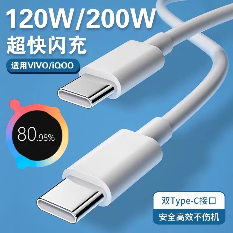 Kabel pengisian daya 200W untuk ponsel VIVO/iQOO kabel pengisian daya super cepat 100 W kabel pengisian daya flash