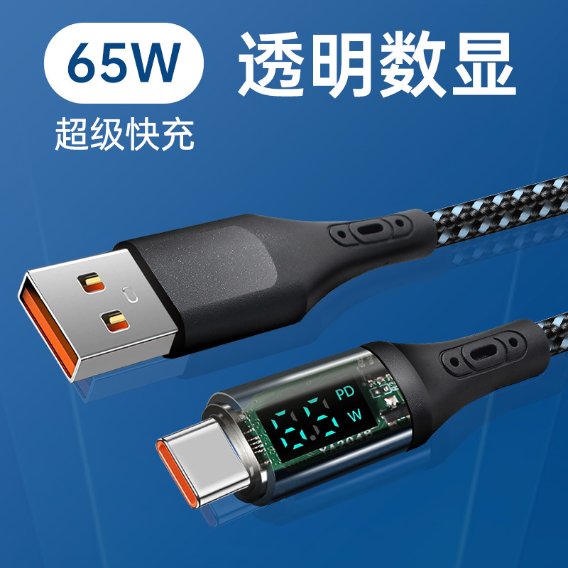 Kabel data tampilan digital transparan 120W baru cocok untuk ponsel Xiaomi Huawei Apple kabel pengisi daya cepat dual typec