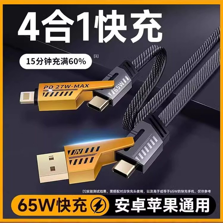 65W Mech 4-in-1 Kabel Data Pengisian Cepat Untuk Kabel Pengisian Typec Apple 2/2 PD27W Kabel Pengisian Flash