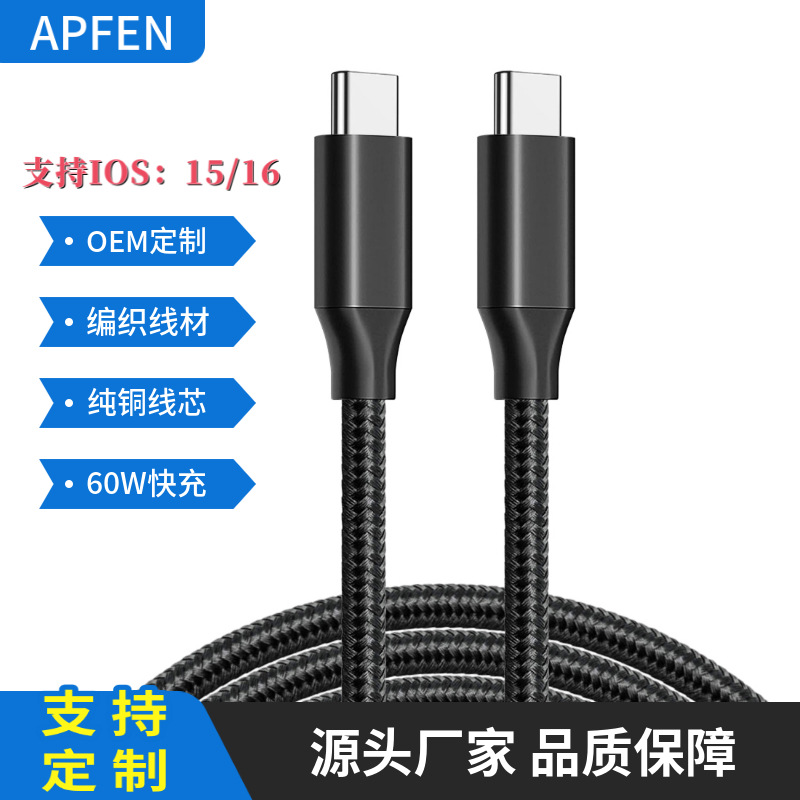 Berlaku untuk Apple 15 kabel data, kabel pengisian daya ponsel tipe-c ke C 100W 240W bahan Aloi aluminium, kabel pengisian cepat