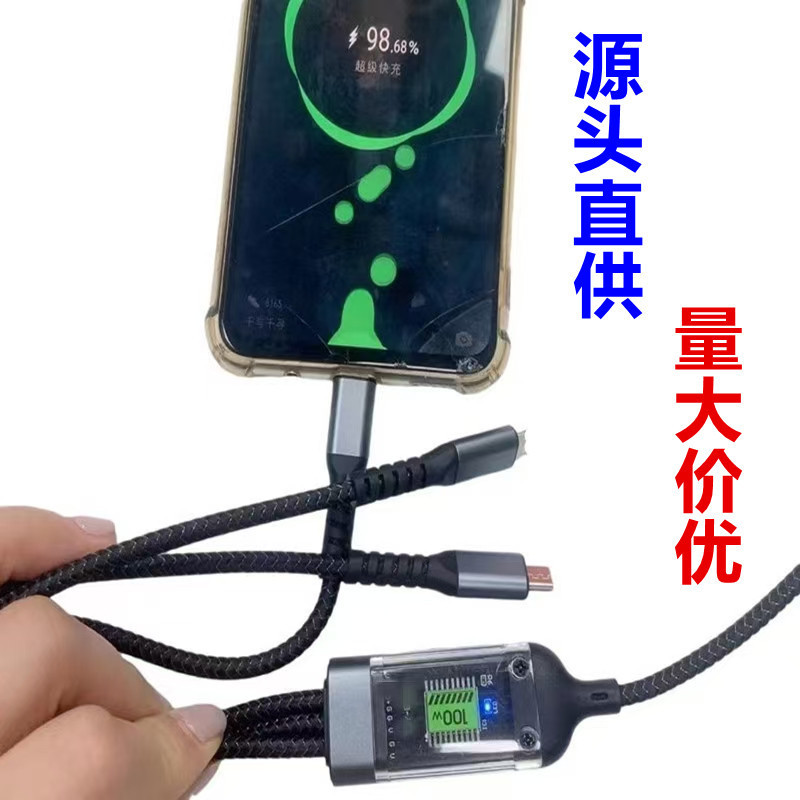 [Barang yang Harus Diambil] 100W Tampilan Digital Satu Seret Tiga Kabel Data Transparan Kabel Pengisi Listrik 3-in-1 Transparan dengan Lampu Charger Cepat