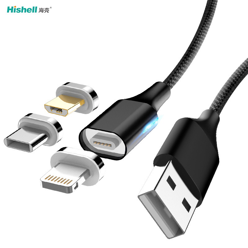 Pesanan langsung pengisi daya Cepat 3A magnetik pengisi daya data tiga-dalam-satu untuk Apple Android Huawei tipe-c