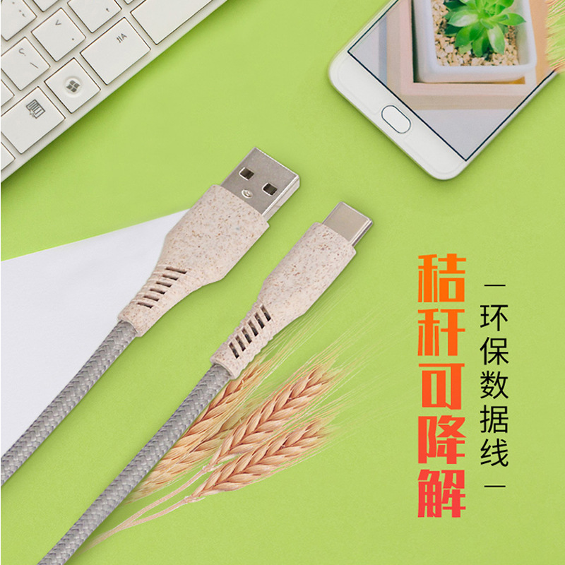 Kabel data lintas data dapat terdegradasi kabel data pengisian cepat jerami gandum kabel pengisi daya ponsel untuk Apple Android tipe-c