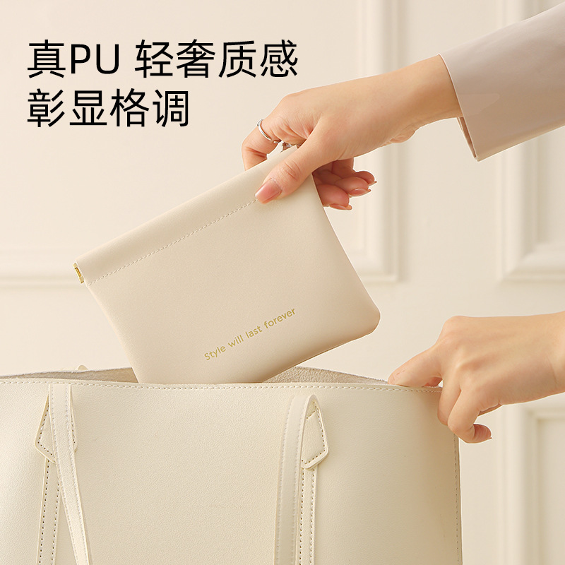 Tas Penyimpanan Selempang Otomatis Tutup Lembaran PU Tas Penyimpanan Kabel Data Kantong Penyimpanan Earphone Dompet Uang Receh Amplop Portabel Mini