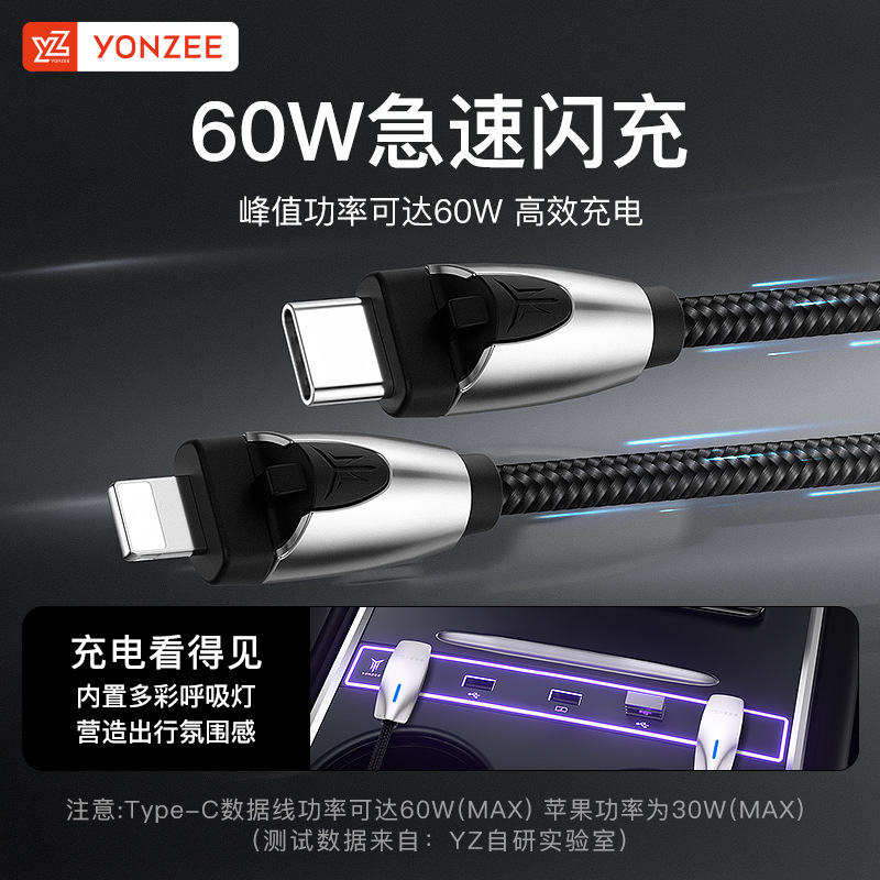 YZ Cocok Versi Baru Kabel Pengisi Listrik Ponsel Tesla Model3Y Kabel Data Mobil Siku Aksesoris Typec Ya