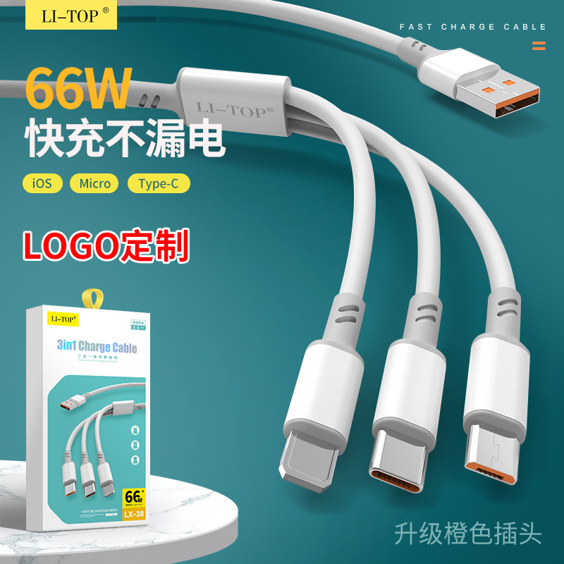一拖三头数据线三合一手机充电线通用66W智能闪快充type-C线批发