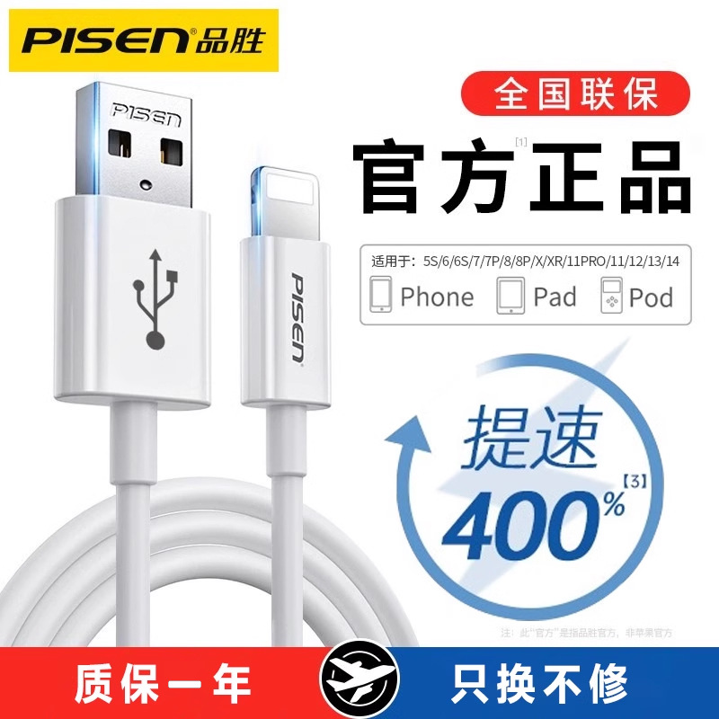 Pinsheng kabel data Apple cocok untuk 15 kabel pengisi daya telepon seluler kabel pengisi daya cepat 14pro pengisian daya cepat 13 asli 12