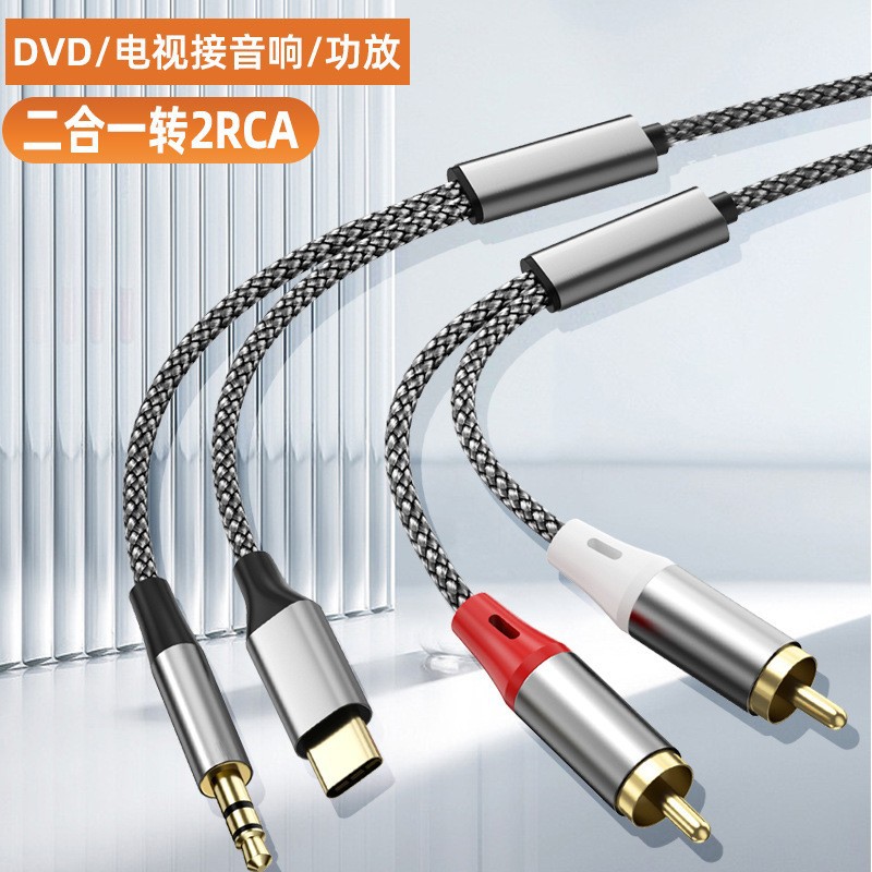 2-in-1 hingga 2RCA Kabel Teratai untuk Tipe-c Apple 3.5MM Kabel Speaker Satu Arah Dua Arah Speaker