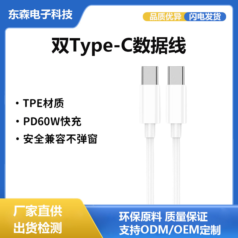 Kabel Pengisian type-c60W Tipe-C ke Ganda Pengisian Cepat TBE Cocok untuk Xiaomi Huawei Ponsel Apple Kabel Data