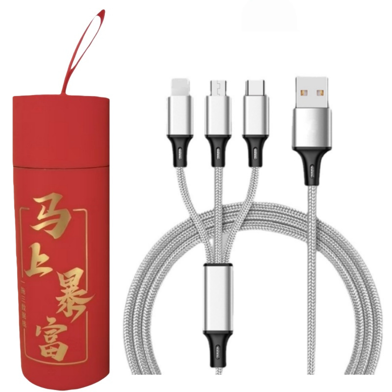 Naga hadiah tahun Xianglong berkat anyaman satu per tiga kabel data untuk Apple Android type-c pabrik grosir